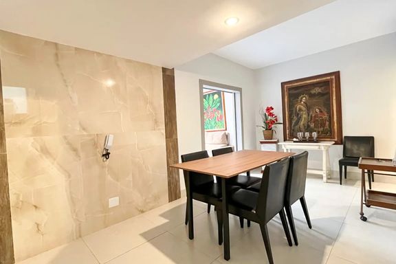 Sala ampla para dois ambientes com piso em tábua corrida, excelente iluminação e ventilação natural. Cozinha independente, equipada com armários planejados, bancadas em granito e piso em cerâmica. 3 quartos espaçosos com armários planejados e piso em tábua corrida, sendo 1 suíte. Banheiros (social e suíte) com acabamento refinado, bancadas em granito, armários sob medida e box em blindex. Área de serviço separada, com dependência completa de empregada (DCE). Condomínio e infraestrutura: Gás canalizado individual; Cerca elétrica; Interfone; Portão eletrônico; 2 vagas de garagem cobertas em linha.
