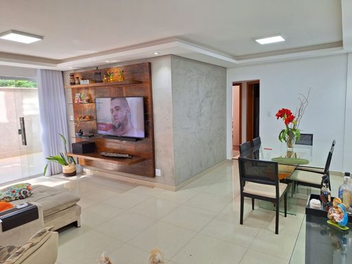1° Pavimento 1 Sala ampla para dois ambientes com piso em mármore, teto rebaixado e iluminação planejada, 3 Quartos espaçosos com piso em tábua corrida e armários planejados, sendo uma suíte com espelho, armários planejados, bidê e box em blindex Cozinha toda com armários planejados, pia e bancada em granito Banheiro social com bidê, espelho e armários planejados. Área de serviço independente com bancada e pia DCE. 2 Vaga de garagem cobertas e paralelas. 2°: Pavimento 1 Sala ampla para dois ambientes com piso em mármore, painel de tv, lavabo, área privativa com piscina e jardim.