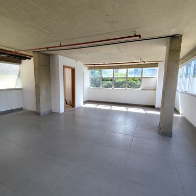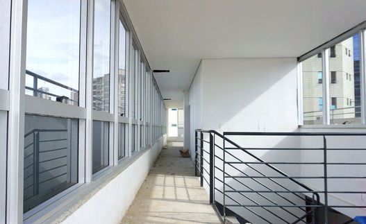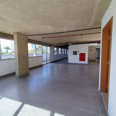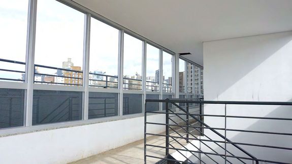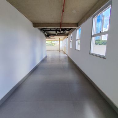Uma varanda maravilhosa circundando o andar, com muita iluminação e conforto.
