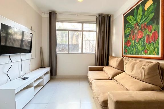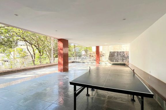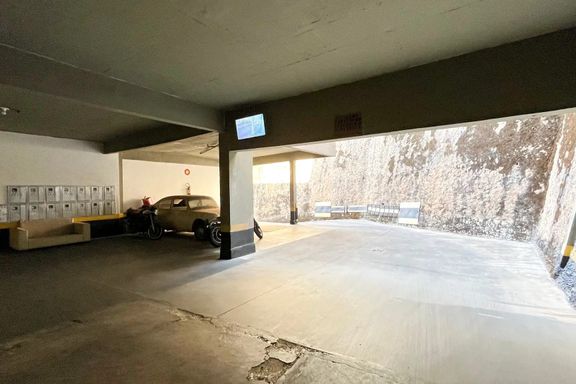 Condomínio com fachada 100% revestida, portaria 24 horas, 2 elevadores e sistema de segurança com alarme e cerca elétrica.