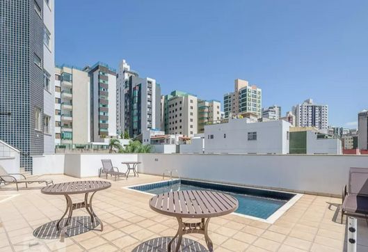 Piscina e churrasqueira.