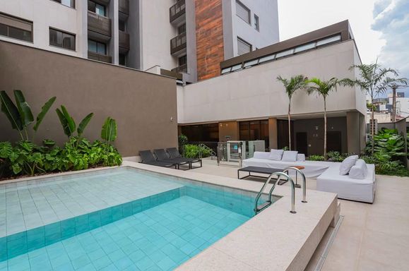 Lazer com piscina e espaço gourmet.